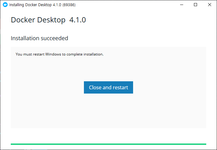 설치가 완료되면 'close and restart'버튼을 눌러주면 윈도우가 자동으로 재시작하게 됩니다.