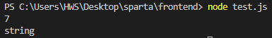 참고로 쌍따옴표 혹은 따옴표안에 숫자를 넣는다면, 출력값은 'number'타입과 똑같이 '7'이 출력되지만, 타입을 확인해보면 'string'즉 문자열인걸 확인할 수 있습니다.