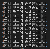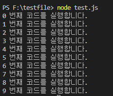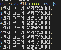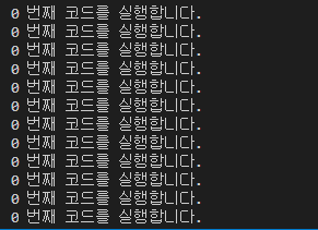 console.log(`${i} 번째 코드를 실행합니다.`)