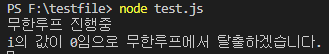 console.log("i의 값이 0임으로 무한루프에서 탈출하겠습니다.")