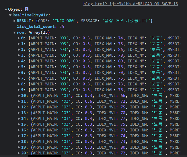 success :function(response) {}안에 별다른 코드 작성 없이 'console.log(response)'만 작성이 되어있다면, 브라우저에서 'F12'단축키를 눌러주면, 'console'탭에 'Object'가 보이며, 눌러보면, 서버에서 받은 데이터의 결과를 확인할 수 있습니다.