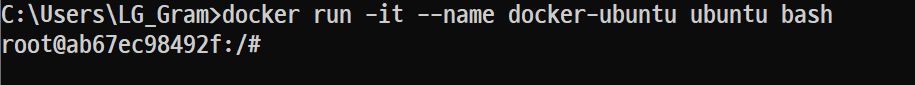 docker run -it --name [원하는 컨테이너 이름] ubuntu bash